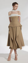 Made with luxurious twill silk, this top features open shoulder detailing and a flattering peplum design. Experience style and comfort with this versatile piece, perfect for any occasion. Expertly crafted for a sophisticated and elegant look.