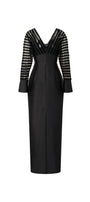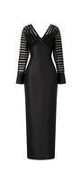 Elevate your style with this expert-crafted maxi sheath dress, featuring a sophisticated V-neck and elegant cuff sleeves. The luxurious taffeta fabric provides a refined finish, perfect for formal events, evening gatherings, or special occasions where polished elegance is essential.