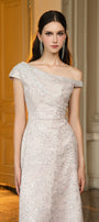 Make a bold statement with the dress. Featuring an eye-catching asymmetric shoulder design, this dress is fully embossed with shimmering sequins across the bodice, catching every light for a dazzling effect. Perfect for nights when you want to stand out, it combines modern edge with glamorous sparkle, ensuring all eyes are on you.