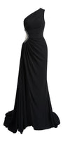 Elevate your evening attire with this expert-crafted sheath maxi dress in luxe crepe. The refined one-shoulder neckline, elegant gathering, and sparkling rhinestone embellishments exude sophistication—ideal for galas, weddings, or upscale parties.