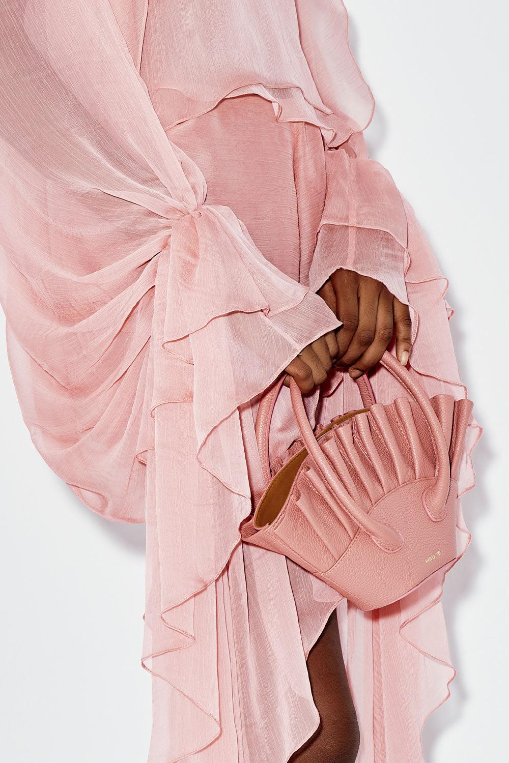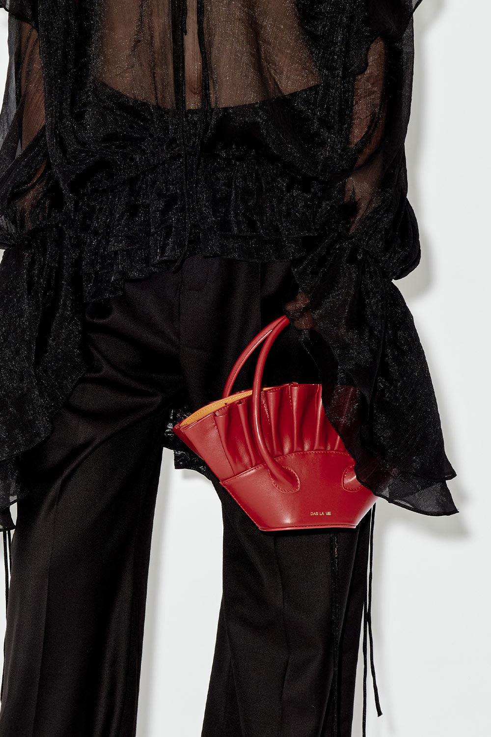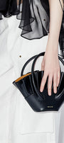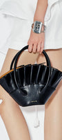 Special Features: Flabellate mini bag shape, Scallop shell wavy hem, Double faux top handle