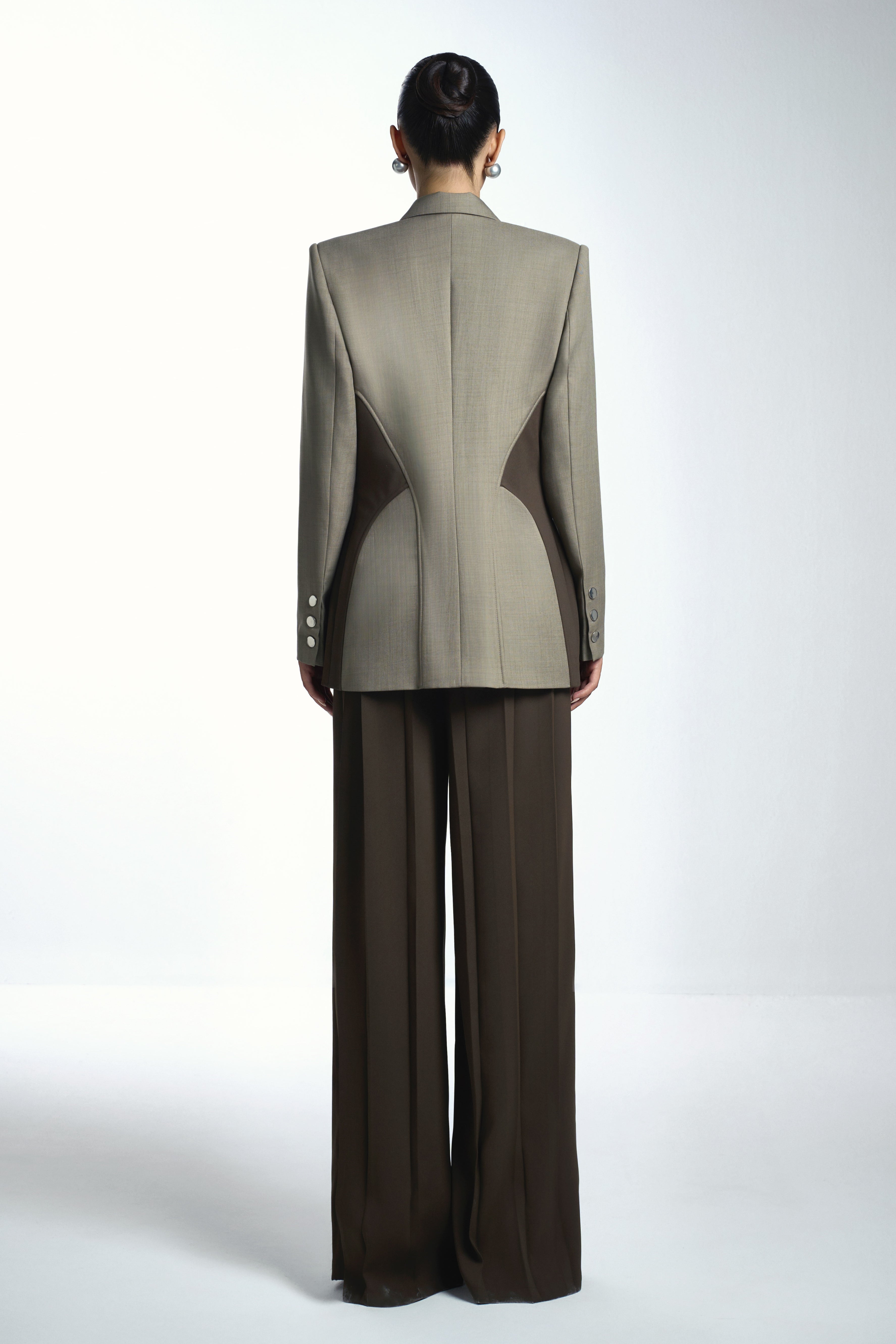 Special Features: Double breasted, Hourglass design with contrasted color, Padded shoulder