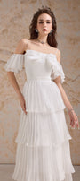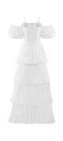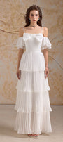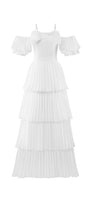 Chantoria Layered Square Neck Silk Organza Floor Length Dress