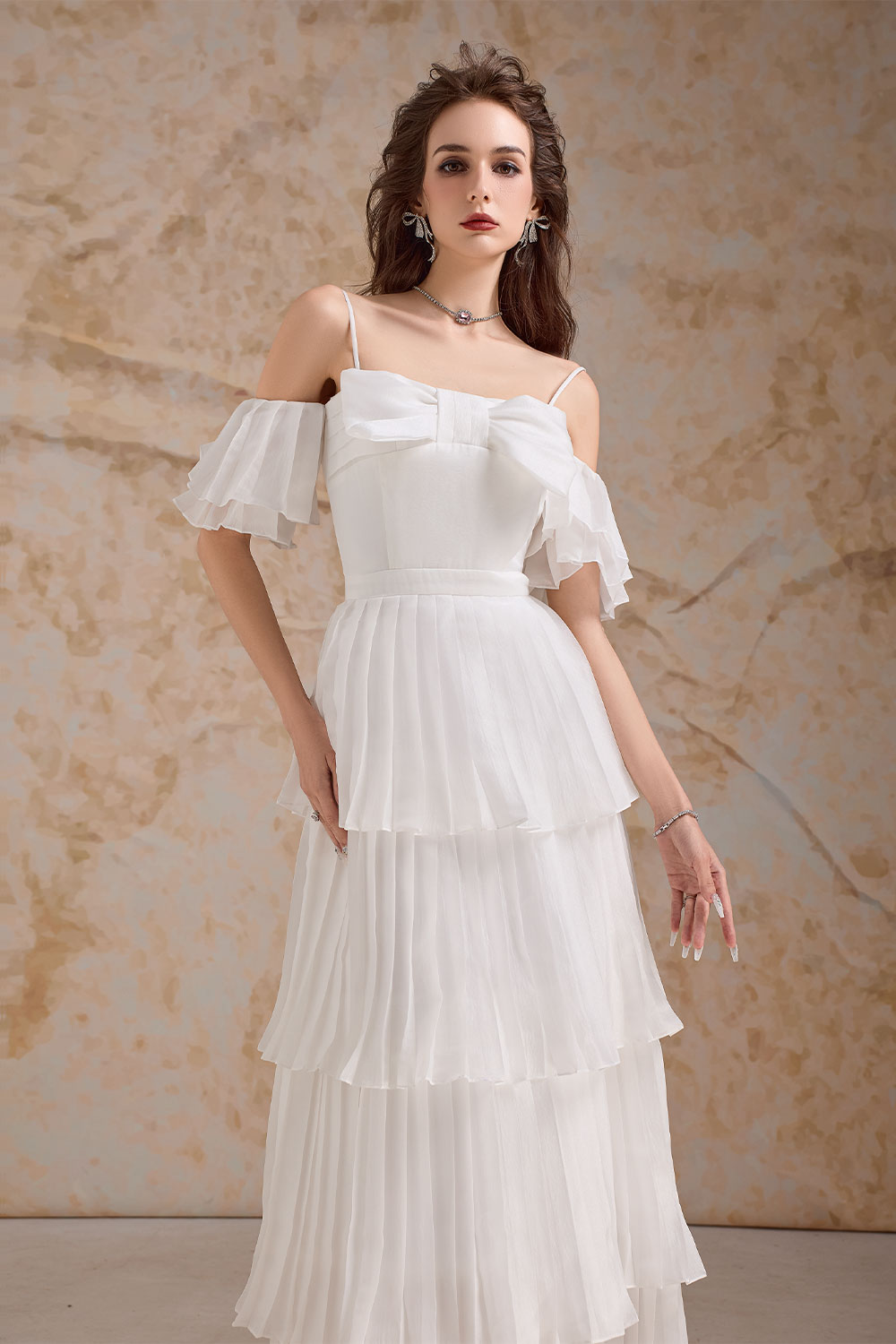 Pleated on bottom and sleeves, Bow-shape on the chest, Adjustable shoulder straps