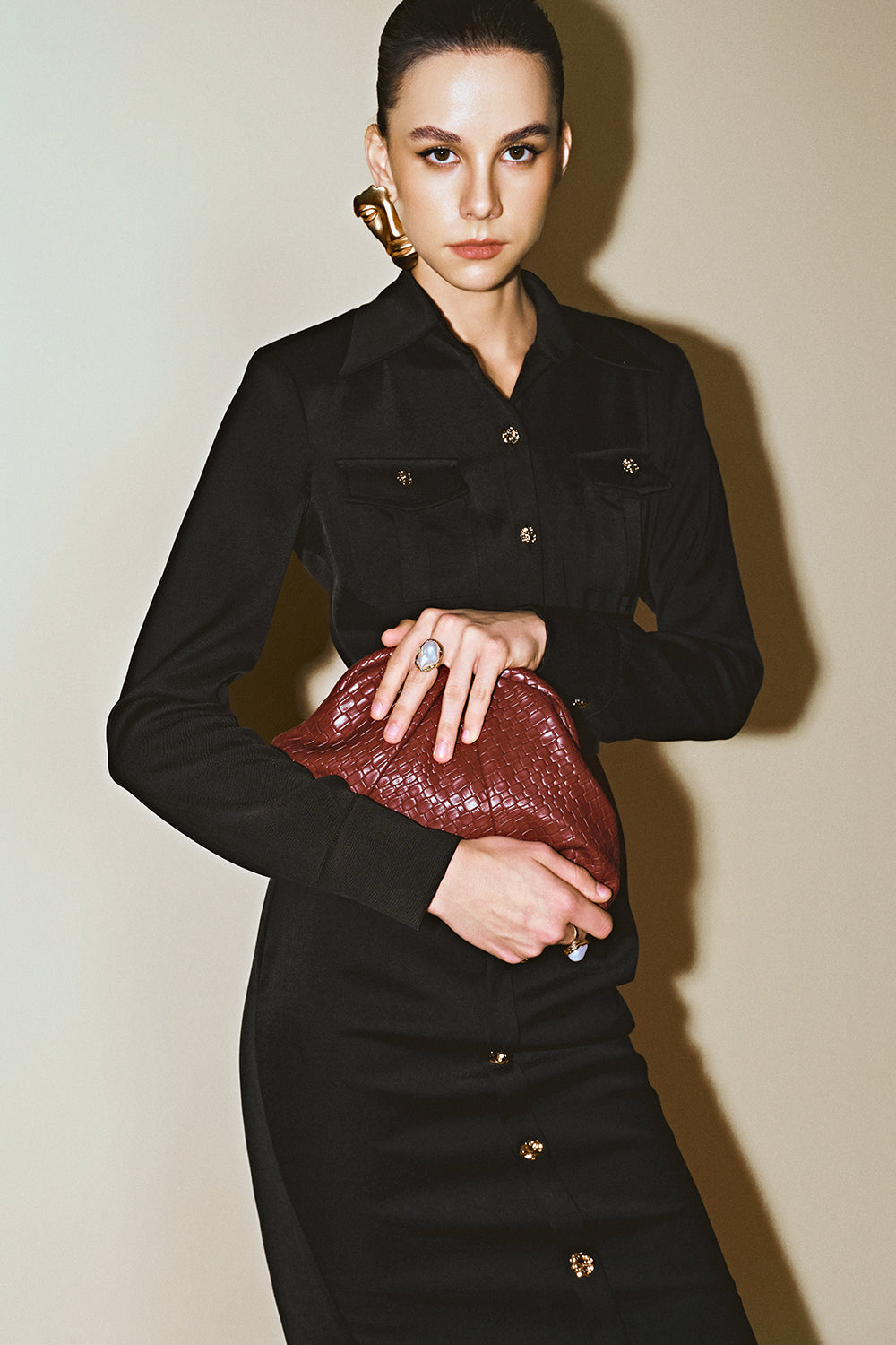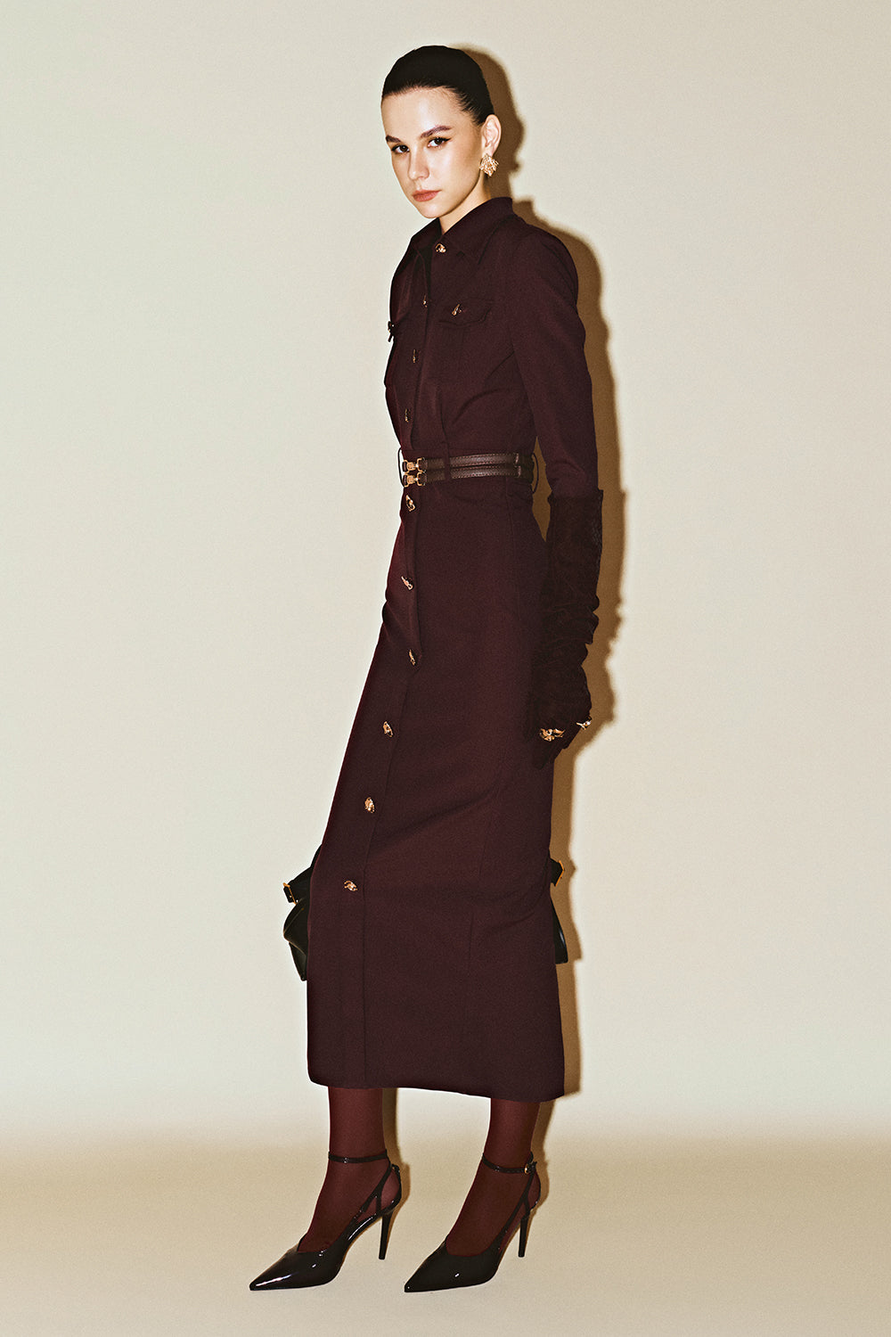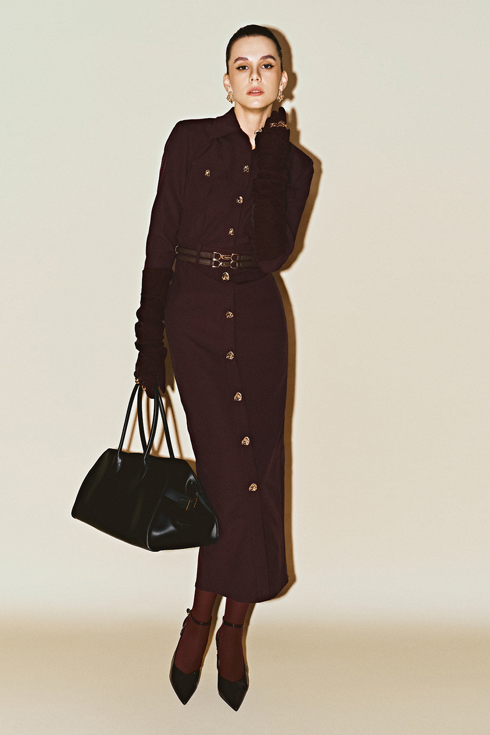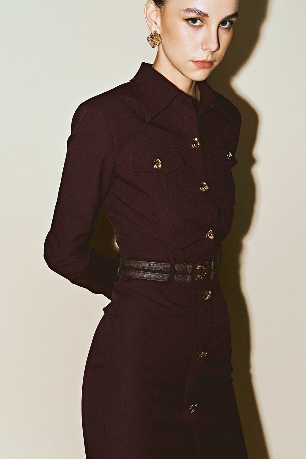 Expertly tailored for a modern silhouette, this sheath midi dress boasts a classic collared neck, regular sleeves, and premium cotton fabric. Button embellishments lend a refined finish. Ideal for professional events, casual gatherings, or daytime outings.