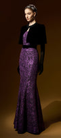Kimberly Trumpet Cape Shoulder Lace Floor Length Set