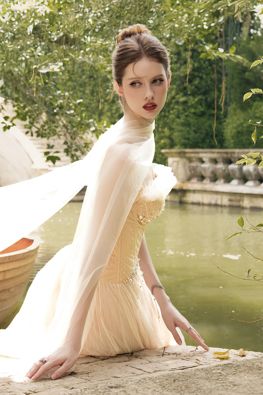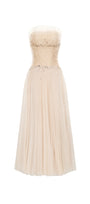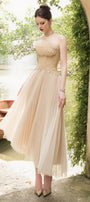 The dress brings playful elegance to your wardrobe. Its delicate Chantilly lace and ruffled details create a romantic, flirty look, while the A-line silhouette flatters every figure. The midi length adds a touch of charm perfect for garden parties or day-to-night events. Dance, twirl, and enjoy every moment in a dress that’s as fun as it is graceful.