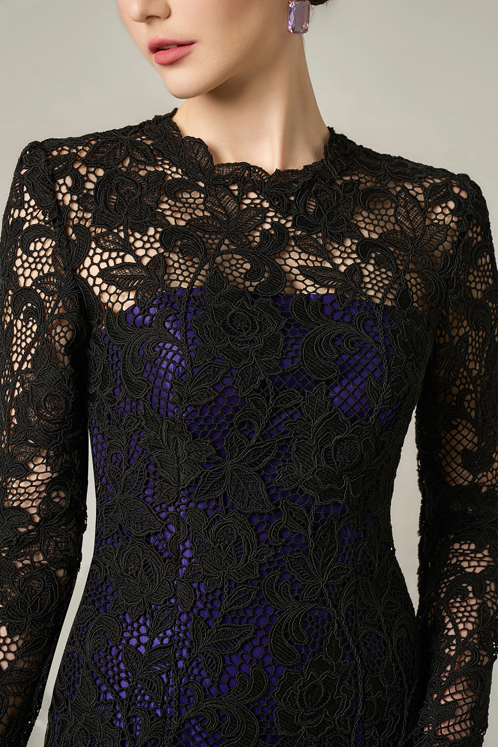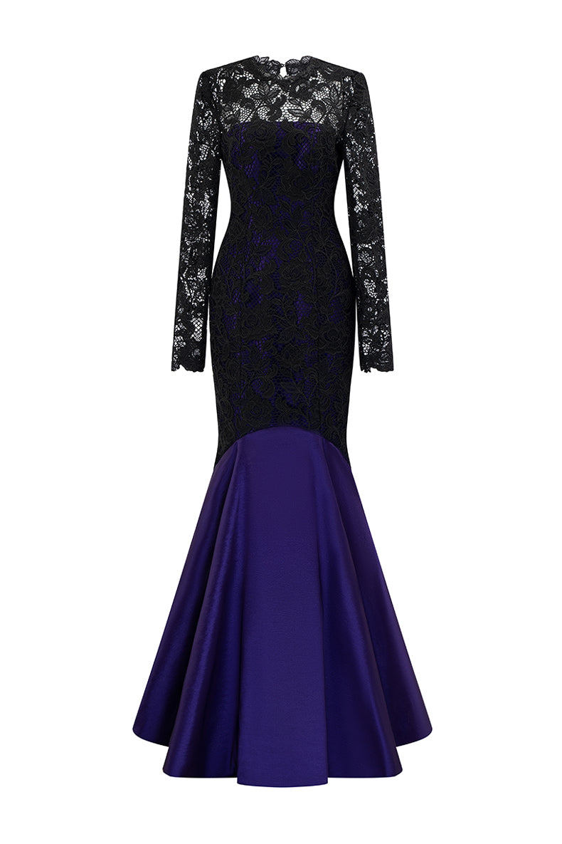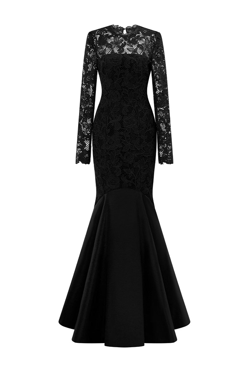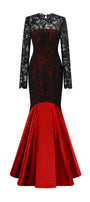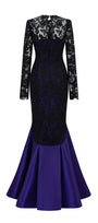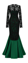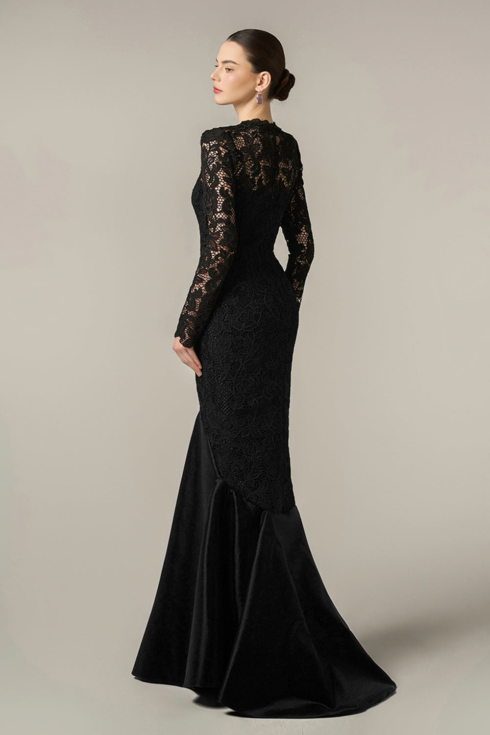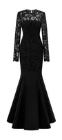 Elevate your style with this mermaid silhouette maxi dress, exquisitely crafted in delicate lace. The round neck and regular sleeves offer timeless elegance, making it perfect for formal events, cocktail parties, or special celebrations.