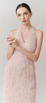 Celeste Halter Feather Maxi Dress