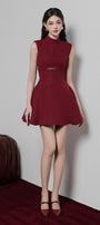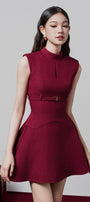 Mila Fit and Flare High Neck Jacquard Mini Dress