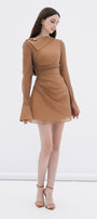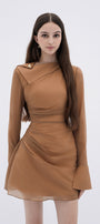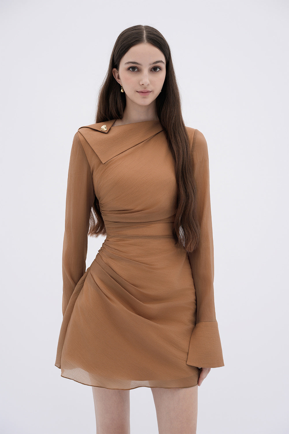 Roux A-line Asymmetric Neck Voile Mini Dress