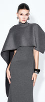 Expertly tailored in premium wool, this trapezoid silhouette cape features a high neck and elegant cape sleeves for timeless sophistication. Ideal for formal gatherings, professional events, and refined evenings out.