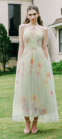 Featuring a unique cape shoulder design and delicate tulle fabric, it exudes sophistication and grace. The A-line silhouette flatters all body types and ensures a comfortable fit. Elevate your style with this stunning midi dress.
