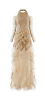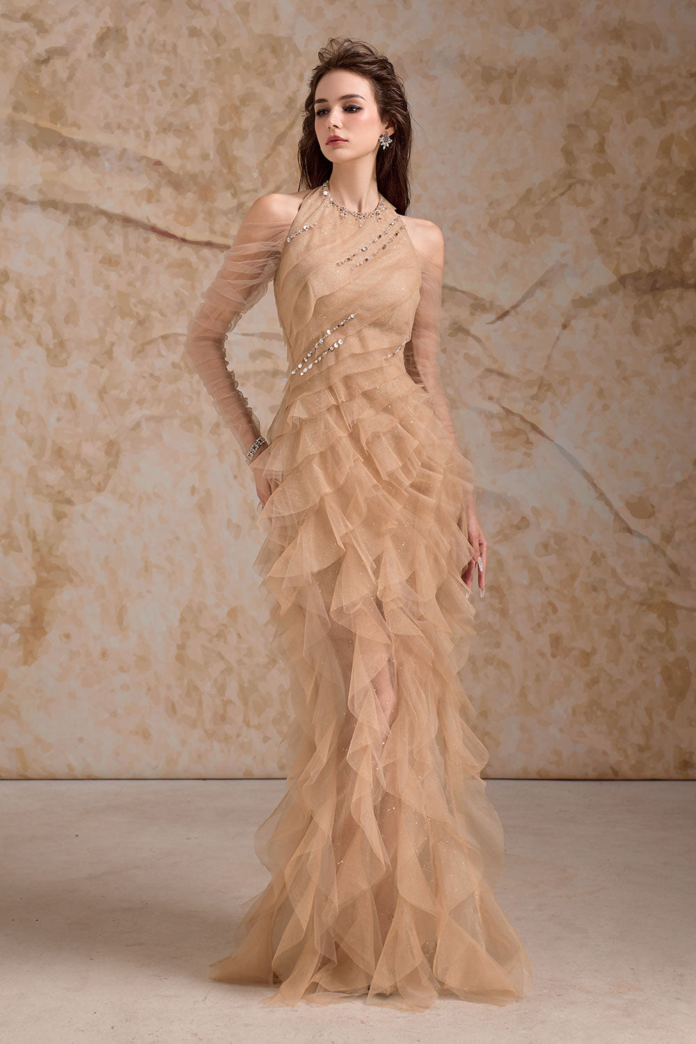 Aurielle Sheath Ruffle Trim Mesh Floor Length Dress