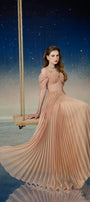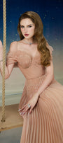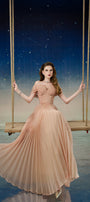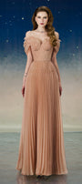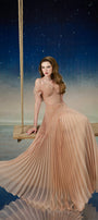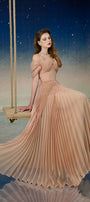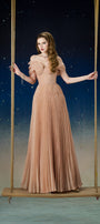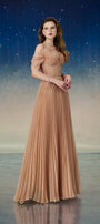 Lustre Fit and Flare Pleated Organza Floor Length Dress