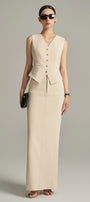 Josette Straight Back Slit Polyester Ankle Length Skirt