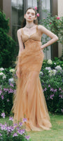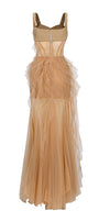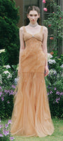 Marigold Gored Ruffle Layer Tulle Floor Length Dress