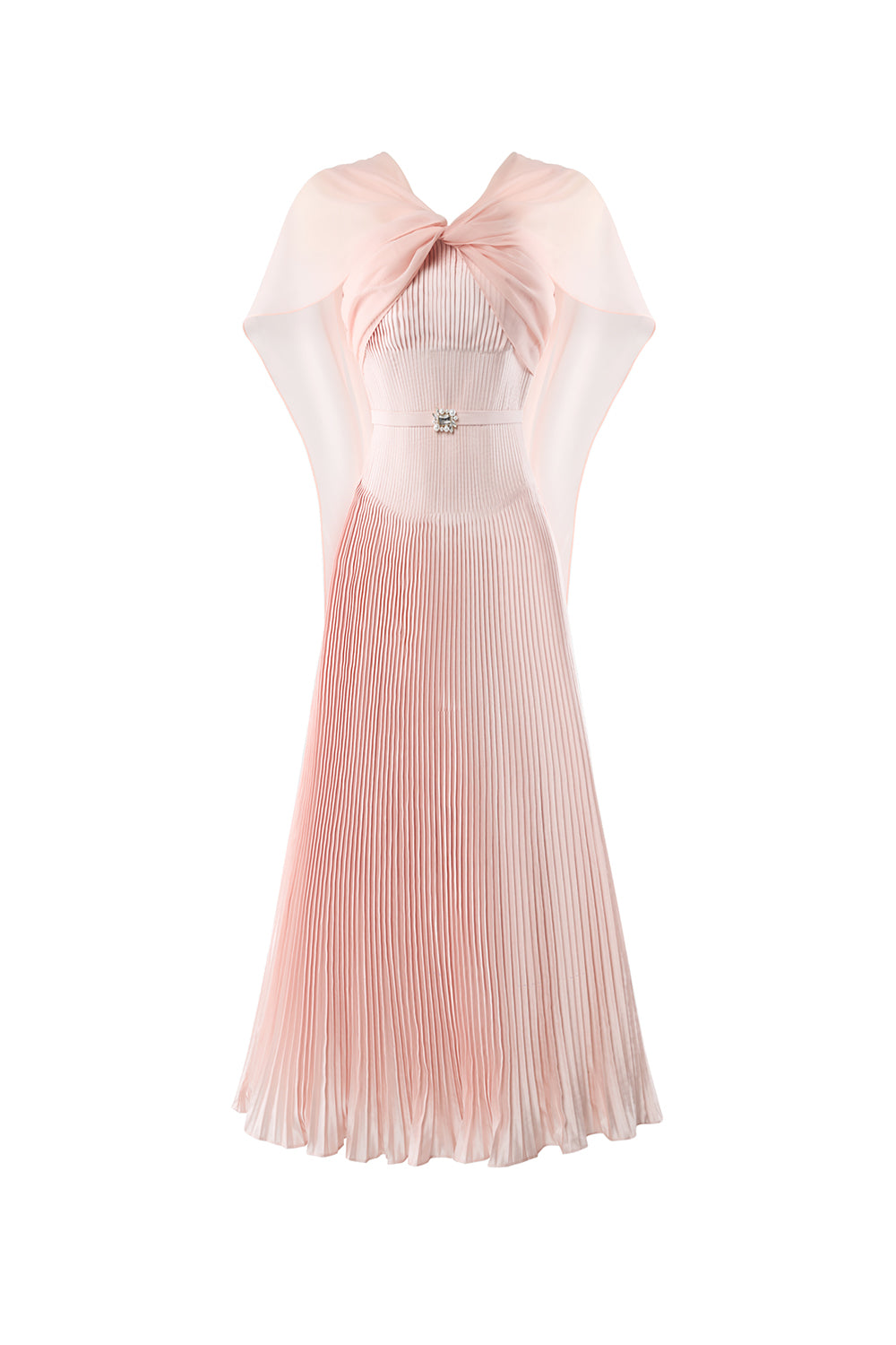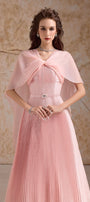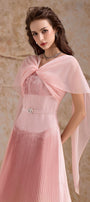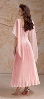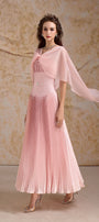 Rosaline Pleated Cape Sleeved Poly Organza Ankle Length Dress