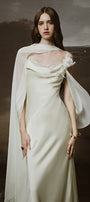 This dress is a timeless and elegant addition to your wardrobe. The cowl neck adds a soft and romantic touch, while the silk satin fabric drapes fluidly and gracefully. With minimalist design, this dress will make you feel both confident and effortlessly stylish.