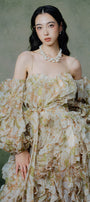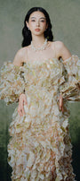 Elevate your wardrobe with this expertly crafted A-line maxi dress, featuring a chic off-shoulder neckline, romantic puff sleeves, and elegant ruffle embellishments. Perfect for weddings, garden parties, and formal gatherings.