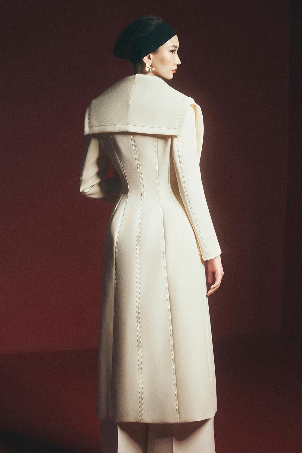 Special Features: Padlock on side (Cream), Sailor collar design, Large front lapel, Dart lines, Prominent stich lines