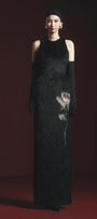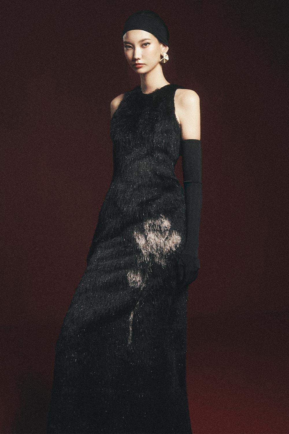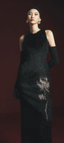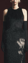 Macias Sheath Back Slit Faux Fur Floor Length Dress