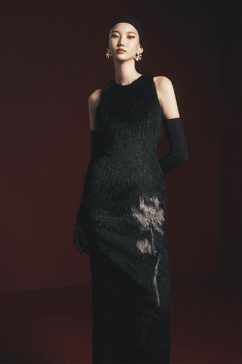 With a sleek sheath silhouette and a back slit for ease of movement, this dress offers both style and comfort. The faux fur adds a touch of elegance, making it perfect for any formal occasion. Upgrade your fashion game with this timeless piece.