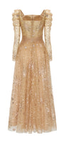 Elevate your style with this A-line midi dress, featuring a sophisticated square neckline, elegant puff sleeves, and exquisite sequin and bead embellishments. Perfect for cocktail parties, weddings, or any special event where you wish to make a lasting impression.