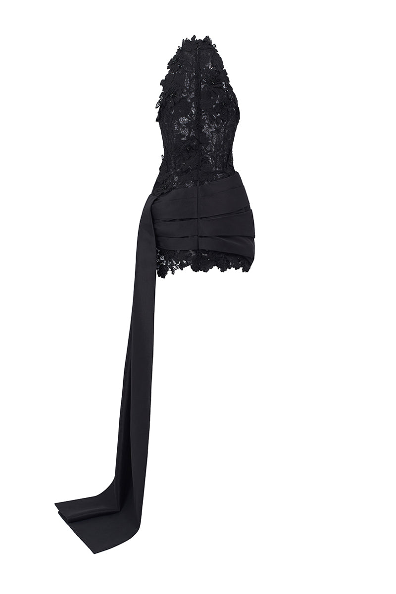 Showcasing expert tailoring, this asymmetric mini dress features a sophisticated high neck and exquisite applique embellishments. Ideal for cocktail parties, evening soirees, or upscale gatherings where you want to make a refined statement.
