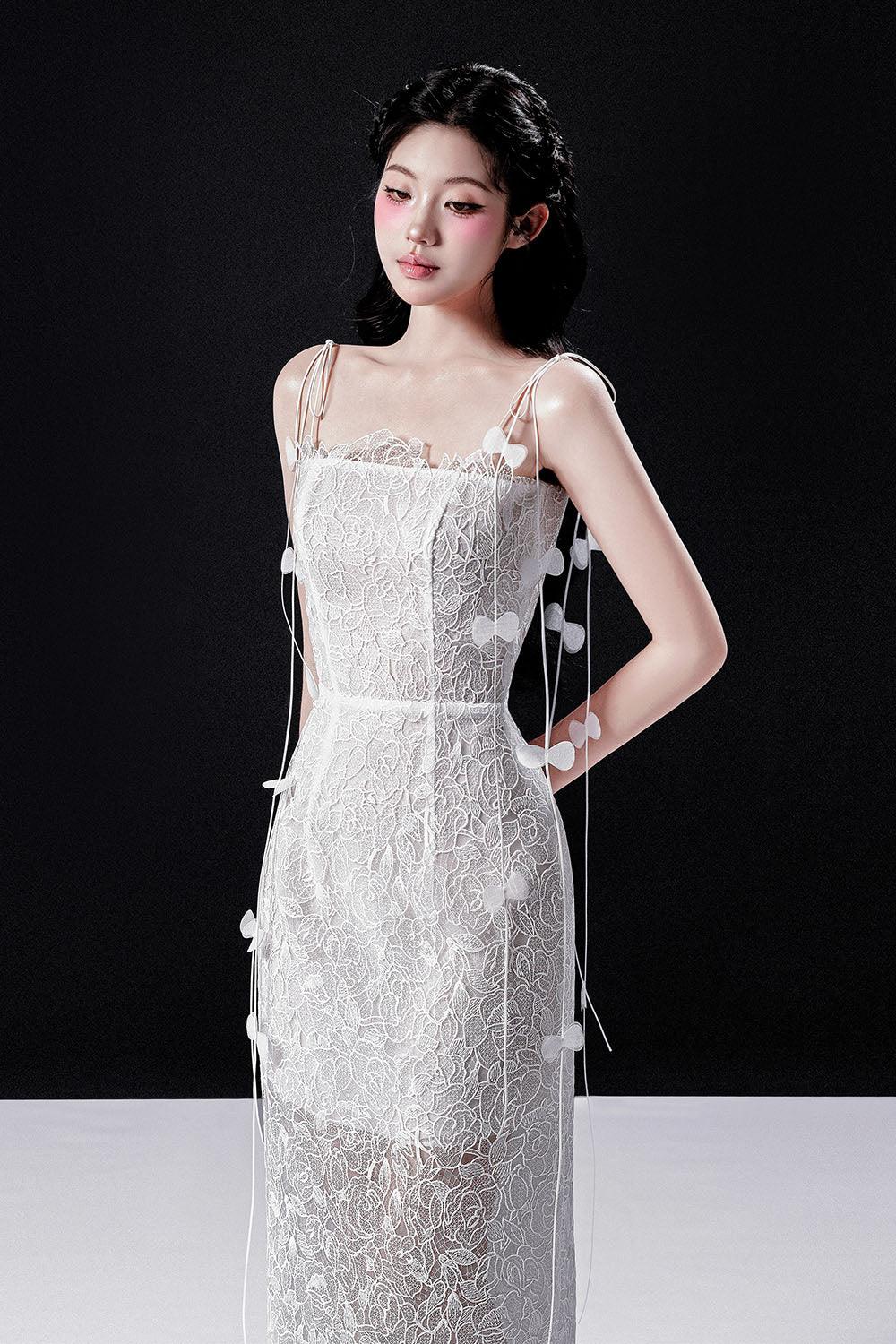Rishima Sheath Spaghetti Strap Lace Midi Dress
