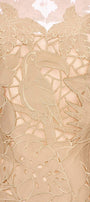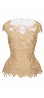 The top showcases expert craftsmanship with its intricate tropical embroidery that adds vibrant detail to a structured silhouette. Designed with a flattering peplum waist and a sheer illusion neckline, this top combines elegance and modernity, making it an ideal choice for sophisticated occasions. The taffeta fabric provides a polished finish, ensuring both style and structure.