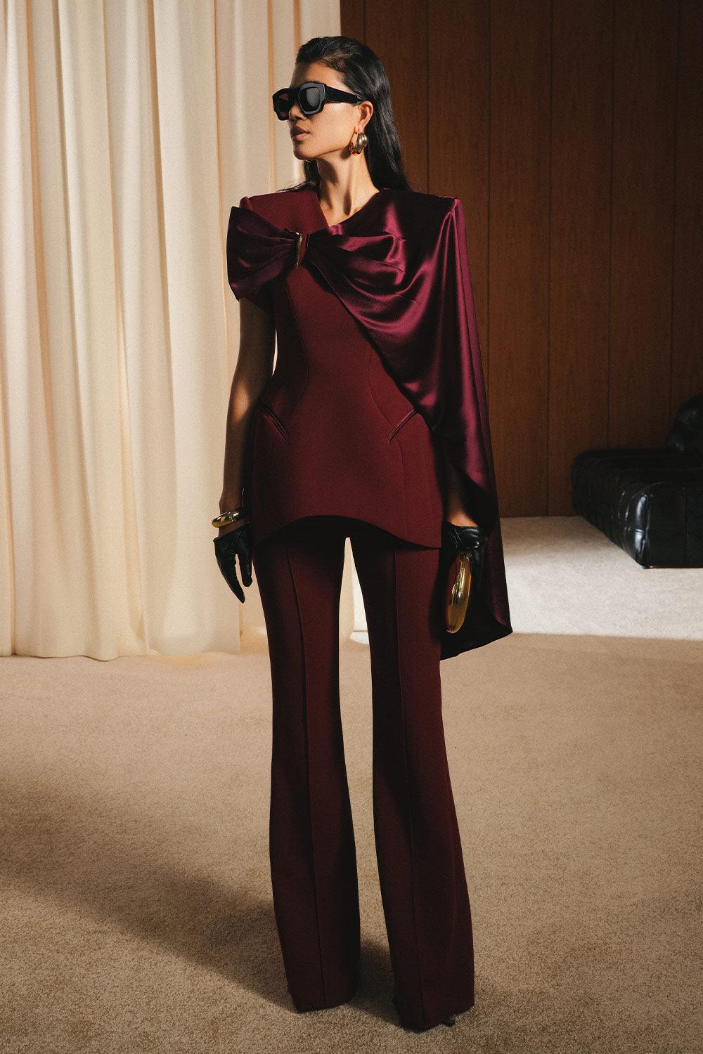 Masham Hourglass Cape Shoulder Tweed Top
