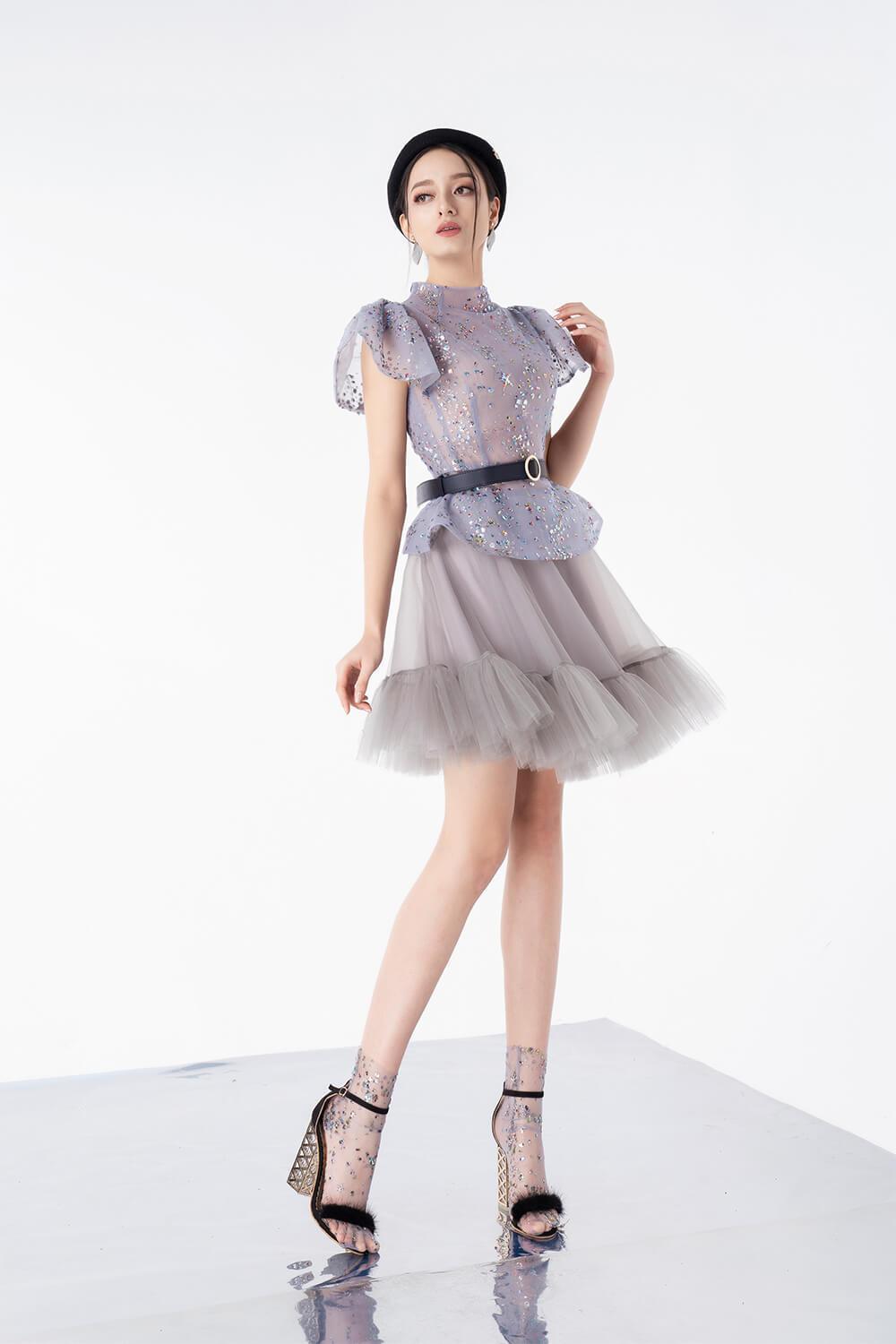 - Material: Top: Sequin, Skirt: Mesh Sheer