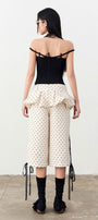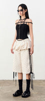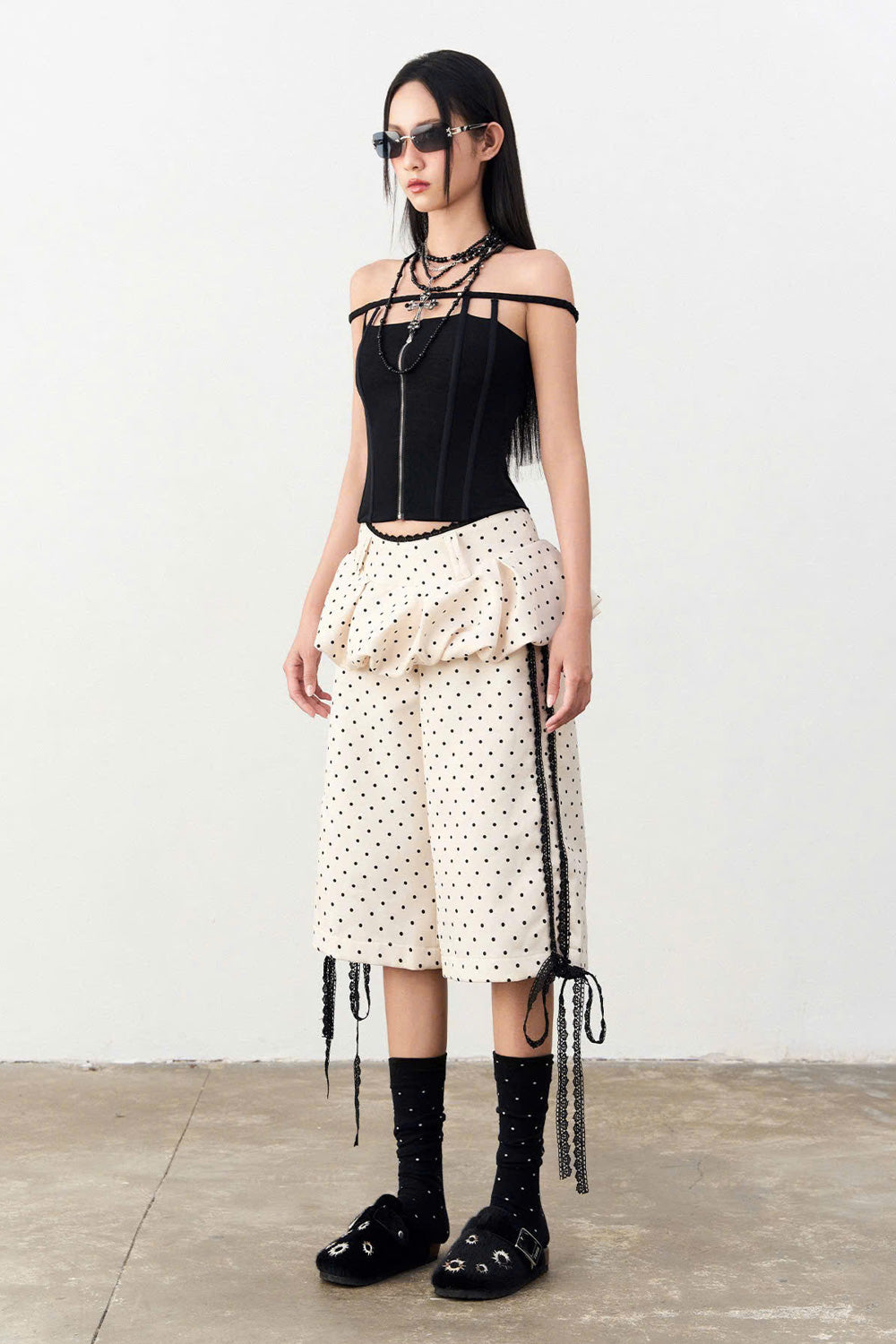 Off-shoulder design with strap, Corset waist with boning, Front zipper