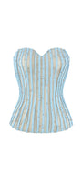 The top features structured corset boning that enhances shape and support, while its striped lines interwoven with delicate beads add a refined, textured detail. Crafted to combine elegance with a modern edge, this top offers both flattering fit and sophisticated embellishment, perfect for elevating any ensemble.