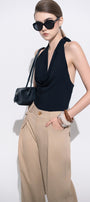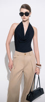 The top offers a sleek, form-fitting silhouette that enhances your natural shape. Crafted from soft modal fabric, it ensures breathable comfort and a smooth finish. The halter neck design adds a sophisticated touch, making it ideal for both casual and dressier occasions. Perfect for layering or wearing alone, this top combines style and comfort with expert tailoring.