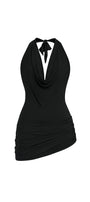 Open back with tie, Asymmetric hem