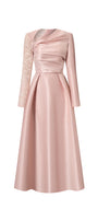 The sophisticated design features an asymmetric neckline and a flattering fit and flare silhouette in luxurious taffeta fabric. Perfect for upscale events, this dress will make you stand out with its unique style and graceful charm.