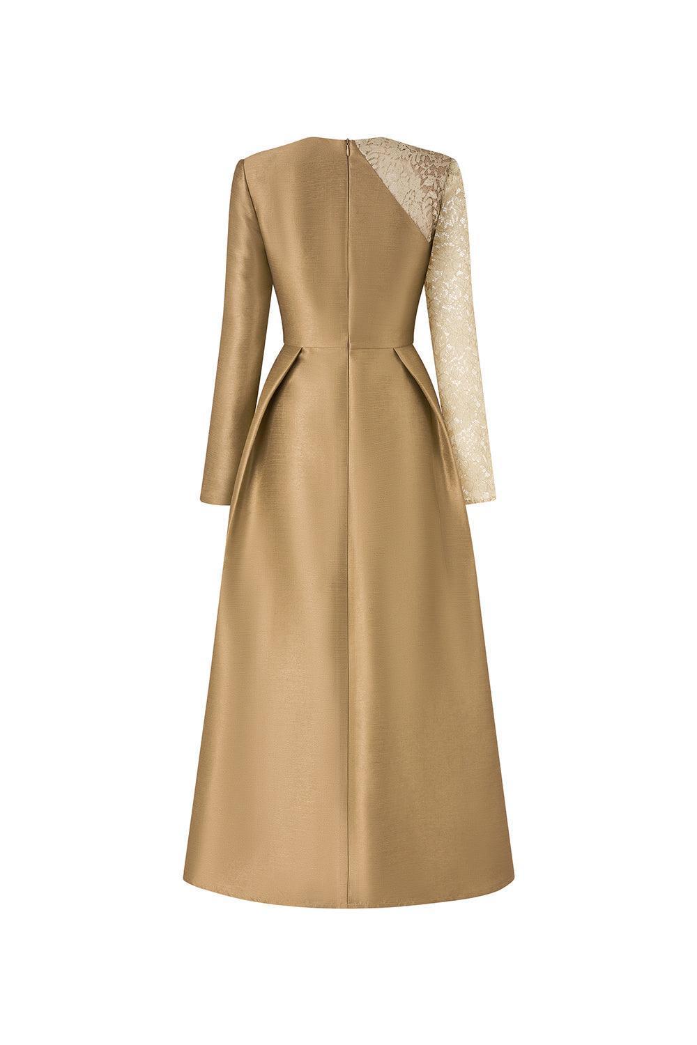 Aarina Fit and Flare Asymmetric Neck Taffeta Midi Dress