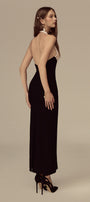 Expertly tailored for modern elegance, this sheath silhouette maxi dress features a sophisticated halter neck and premium spandex material for a flawless fit. Perfect for cocktail parties, evening events, or special occasions.