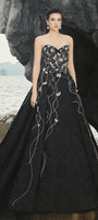 Attached leaf with crystals along the dress, Draped flare skirt, Long back train flap