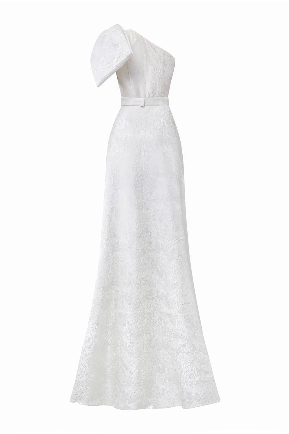 Celeste Straight One Shoulder Jacquard Floor Length Jumpsuit