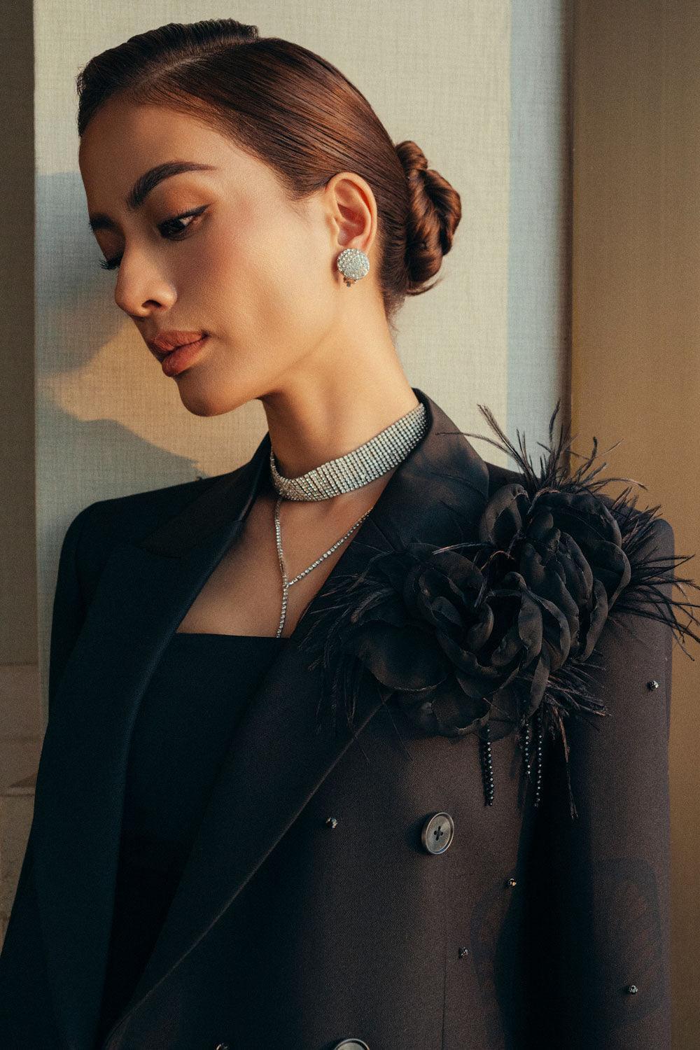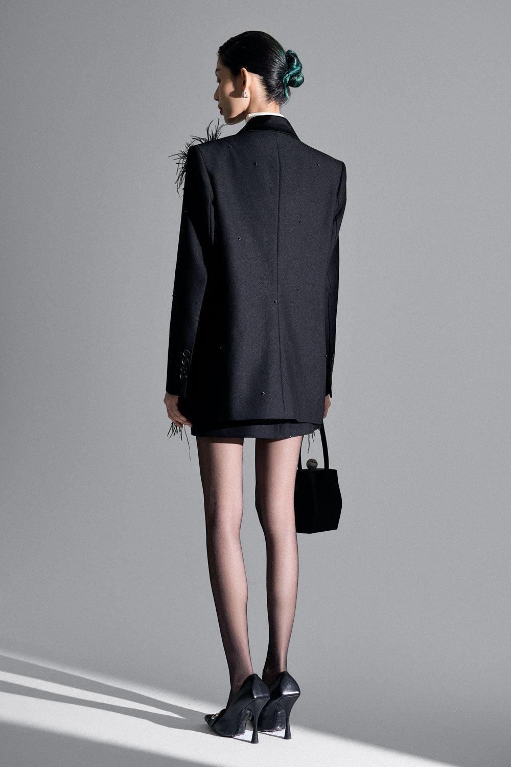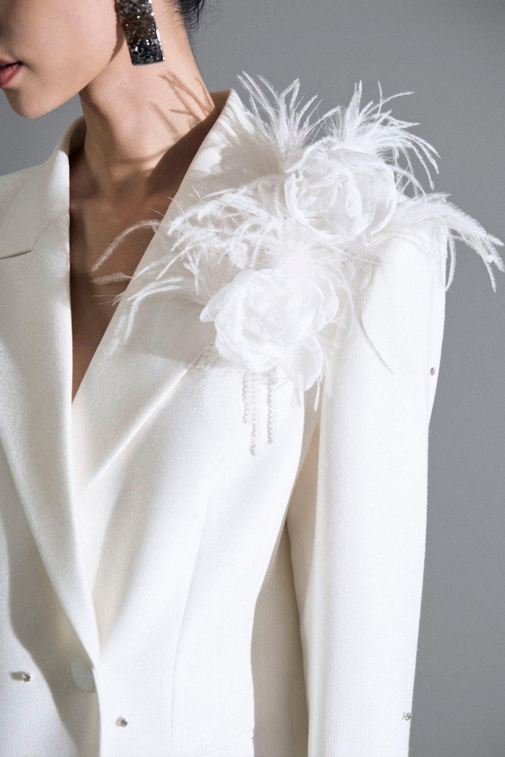 Special Features: Peak lapel, Square shoulder, Attached feather, stones and 3D flowers, Slit back, Double-breasted