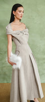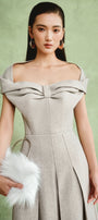 Venice Off-Shoulder Pleated Midi Dress