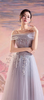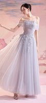 Daniel Fit and Flare Cold Shoulder Sleeved Mesh Silk Long Length Dress