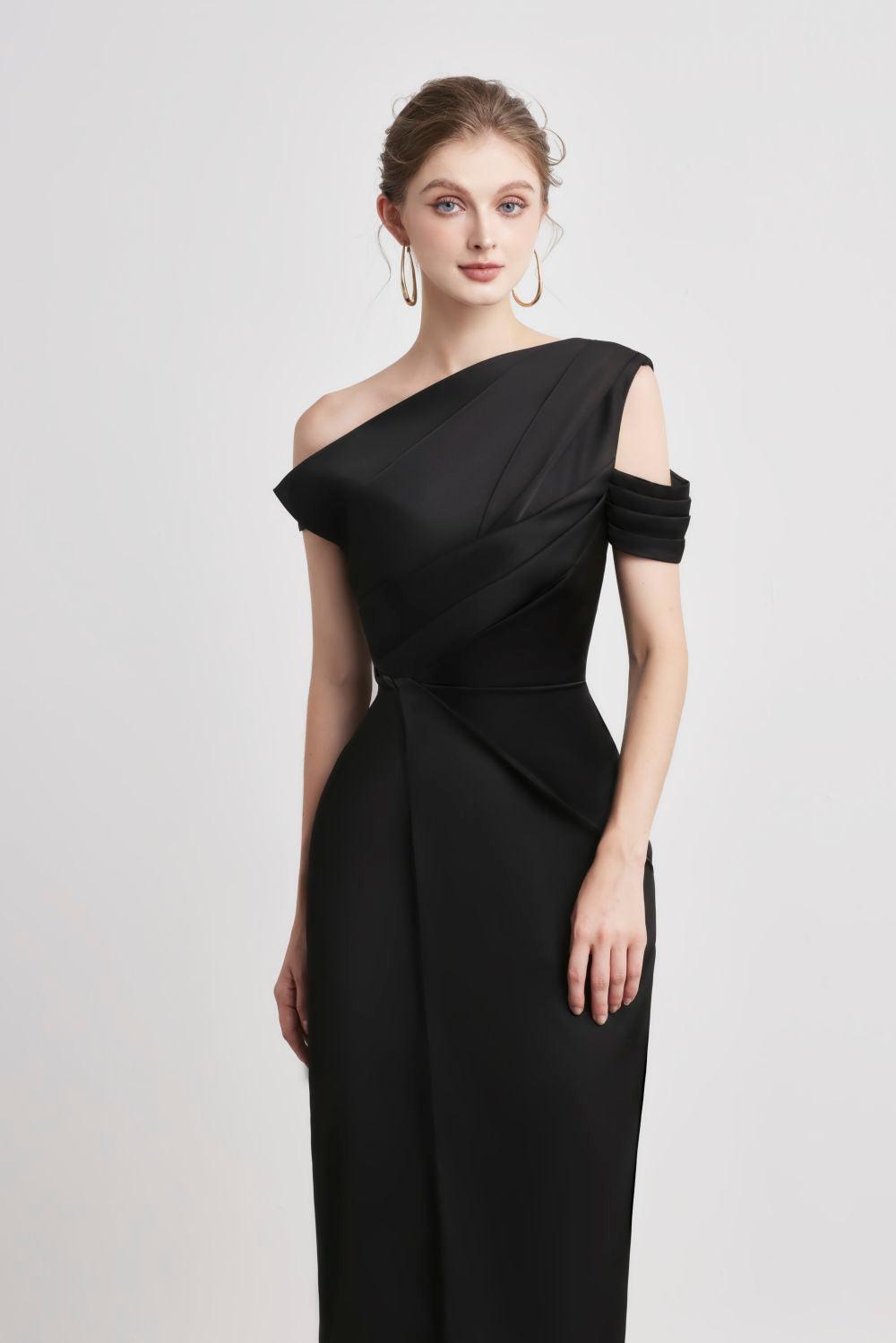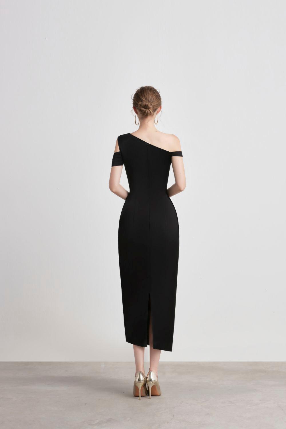 Bauhinia Pencil Pleated Shoulder Silk Spandex Midi Dress