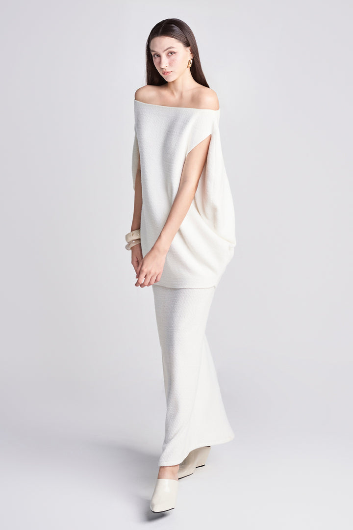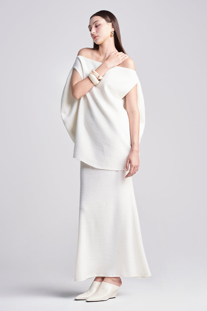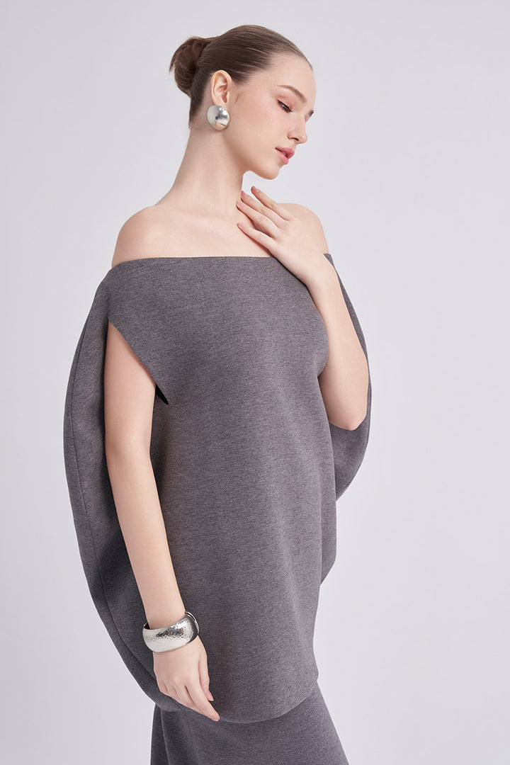 This top offers a comfortable and trendy style with its cocoon off-shoulder design. Made with high-quality wool, it provides warmth and luxurious softness for the colder seasons. Upgrade your wardrobe with this chic and versatile top.