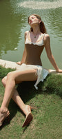 The dress expertly combines structure and comfort. Featuring a corset-style waist that sculpts and defines your silhouette, this dress uses stretch twill fabric for flexibility and ease of movement. Its drop waist design elongates the torso, while the extra short length adds a modern, edgy touch. Ideal for those seeking a refined yet contemporary look, this dress balances tailored fit with wearable comfort.