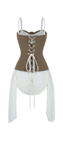 Special Features: Draped skirt with drawstring, Corset waist with boning, Cord strapped