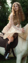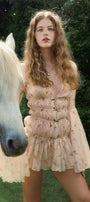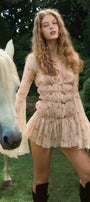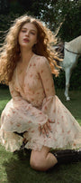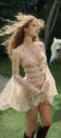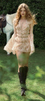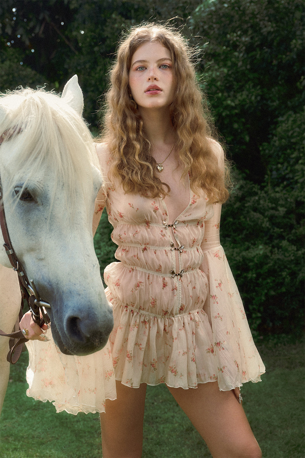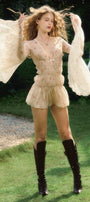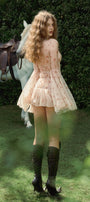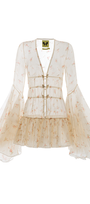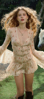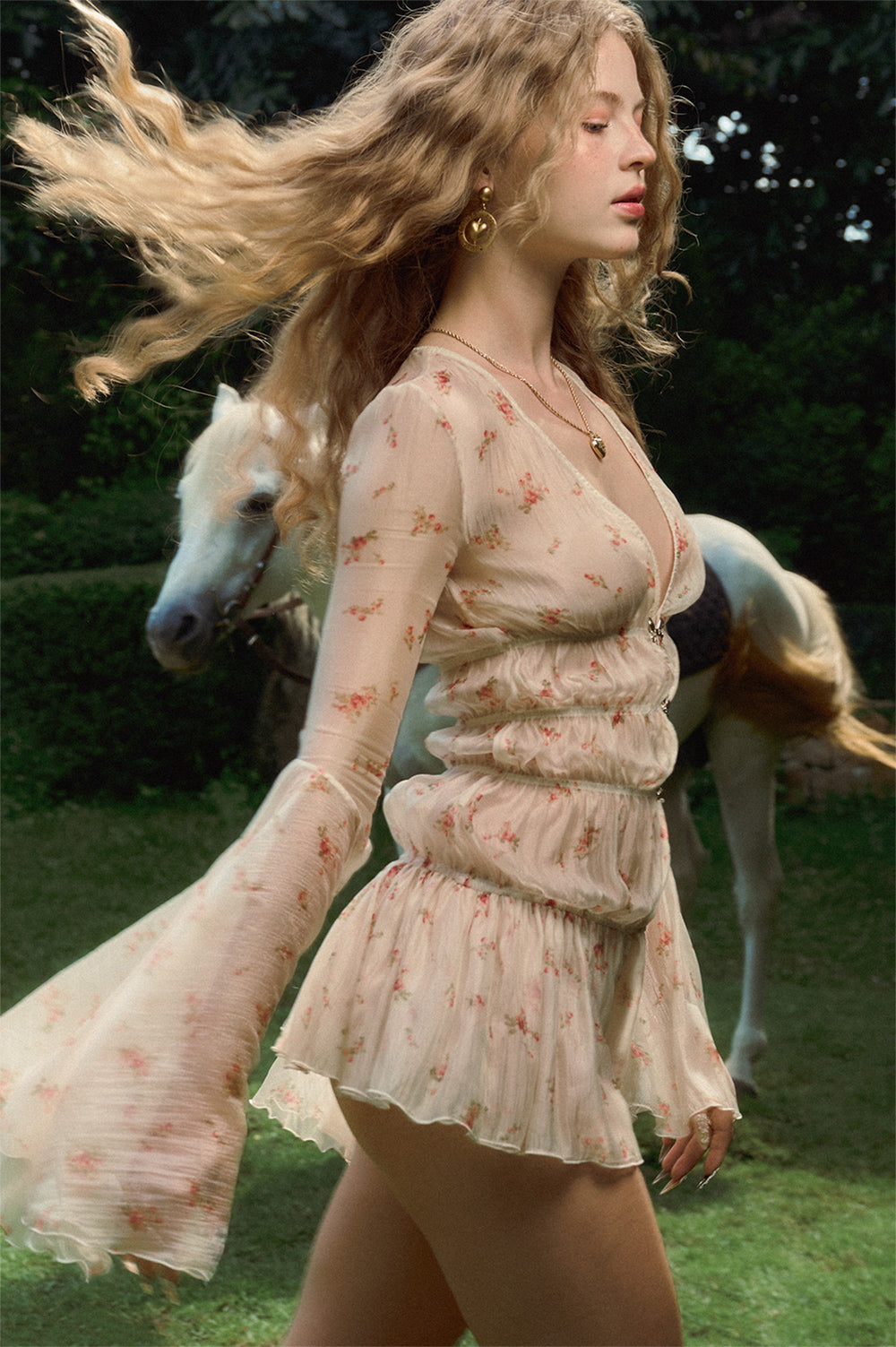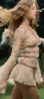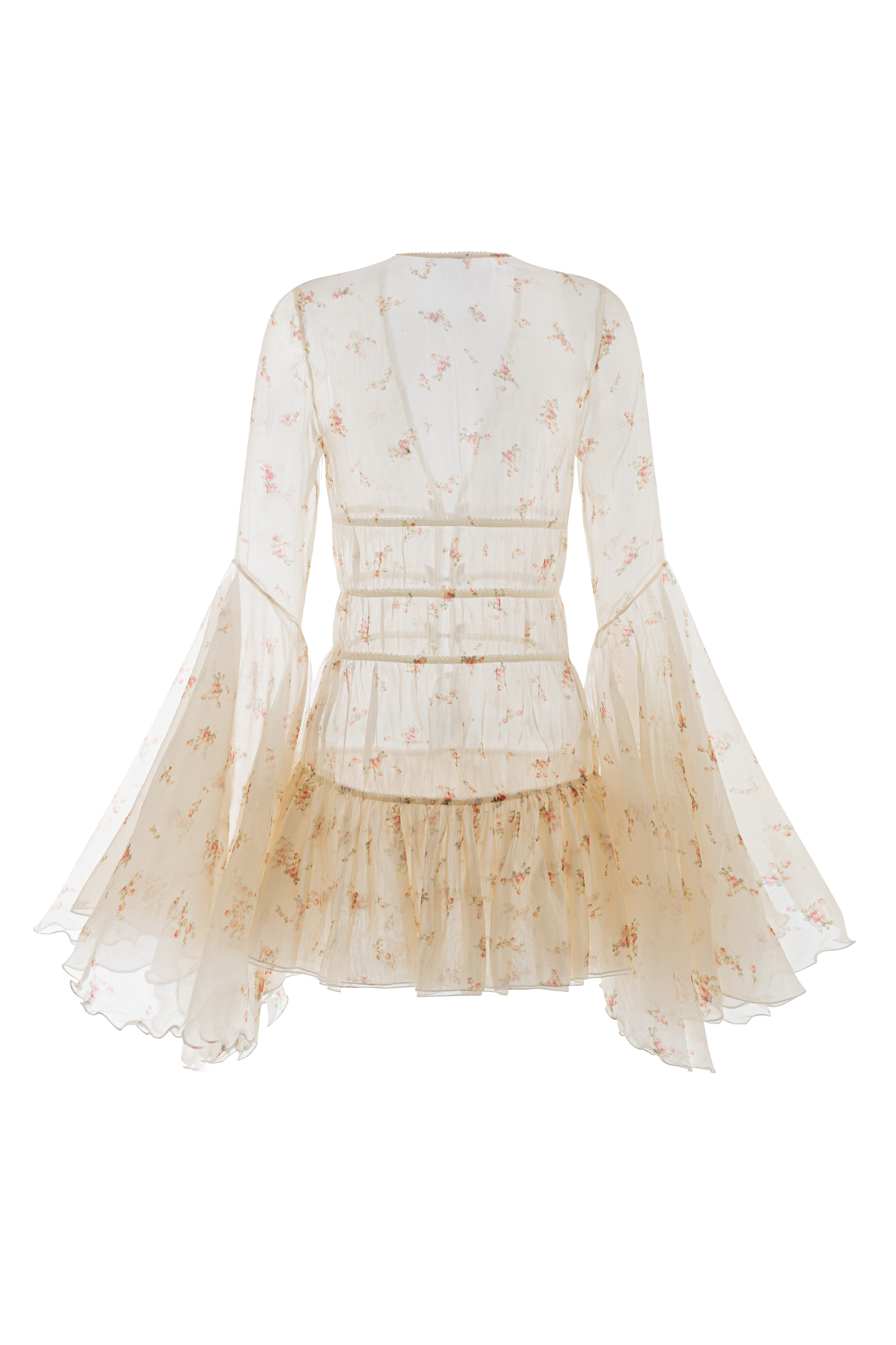 Florentine Drop Waist Flute Sleeved Sheer Fabric Extra Short Length Dress